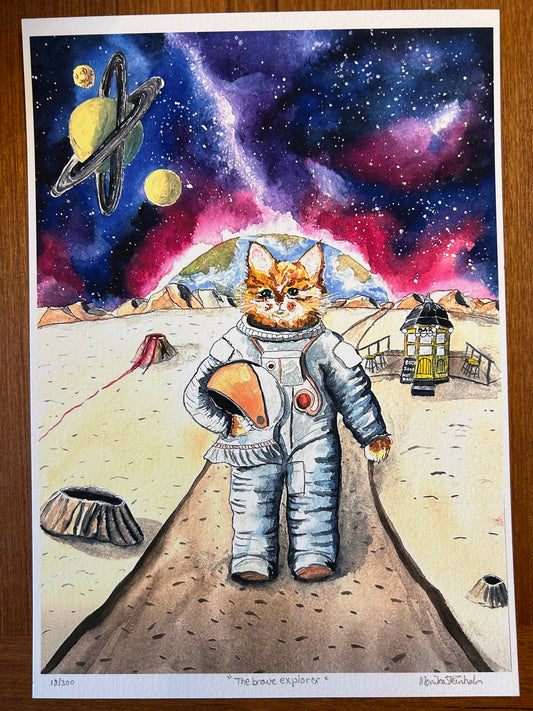 Jeg elsker gjenbruk. For å lage noen av trykkene bruker jeg derfor drikkekartonger. Da risser jeg motivet inn i kartongen. Deretter setter jeg inn kartongen med blekk og trykker bildet på egnet papir.