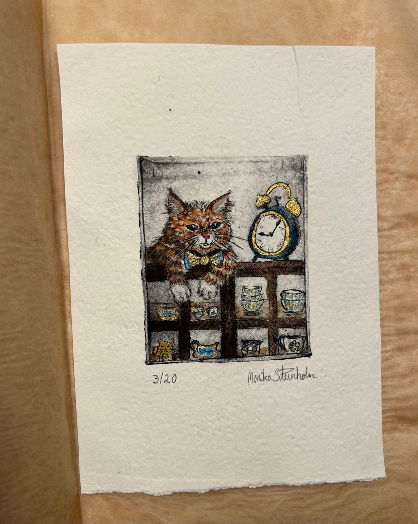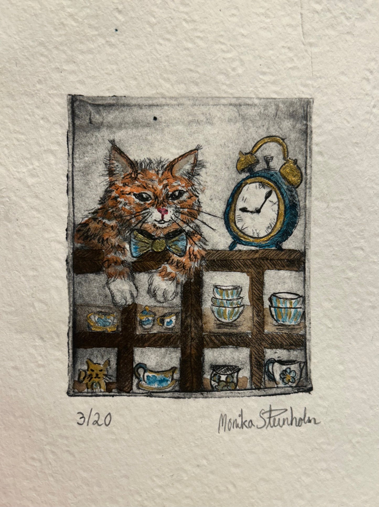 Den i farger er trykket på 300 gram syrefritt akvarellpapir og malt med akvarellmaling.